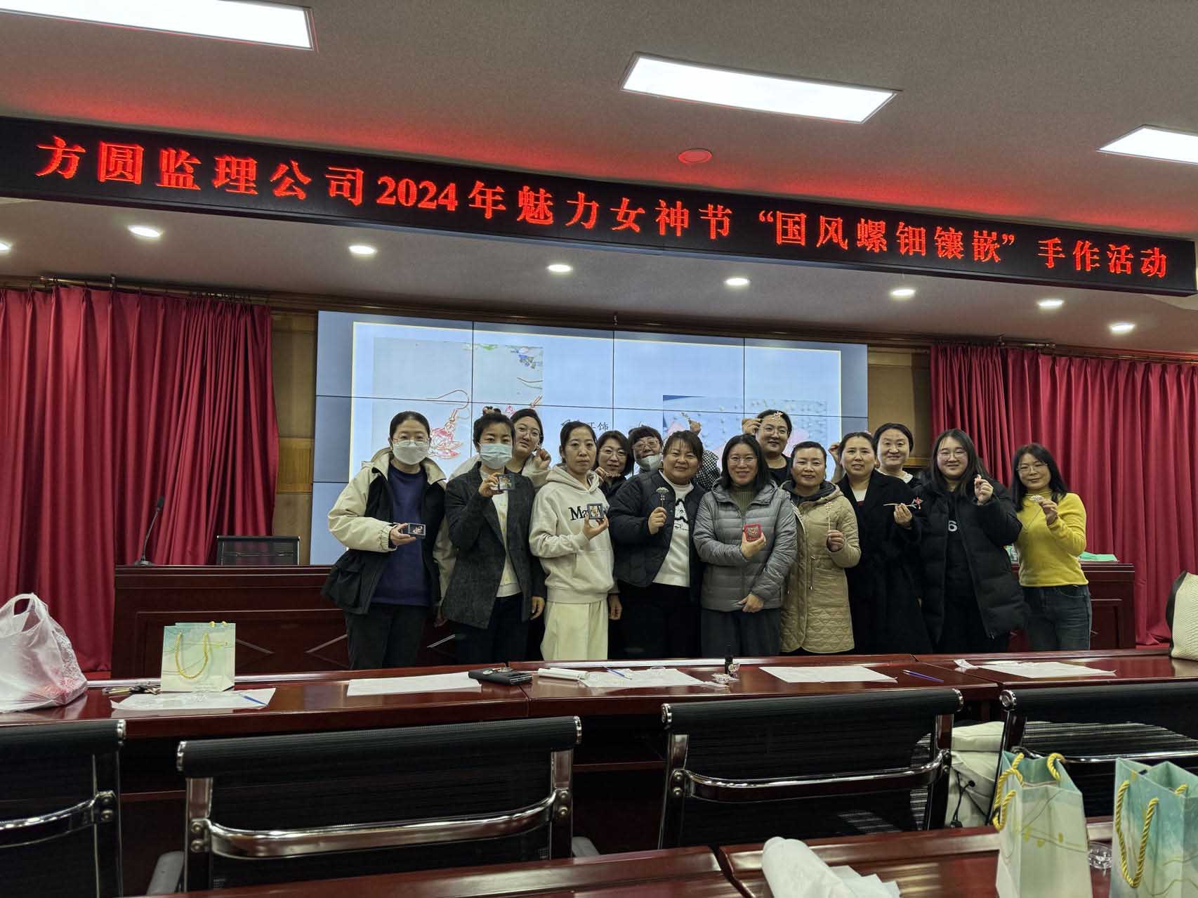 三月沐風,春回律轉,第114個“三八”國際婦女節如約而至。在這美麗的季節里,方圓監理公司工會于3月8日下午在公司西五樓會議室精心策劃了2024年魅力女神節“國風螺鈿鑲嵌”手作活動,向女職工送去了節日的關懷和祝